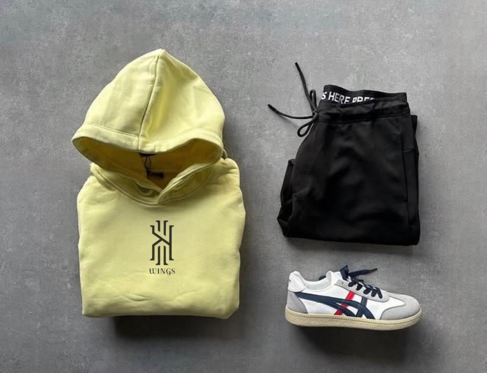 YALLOW HOODIE WITH BLACK PANTS MADE IN TURKEY